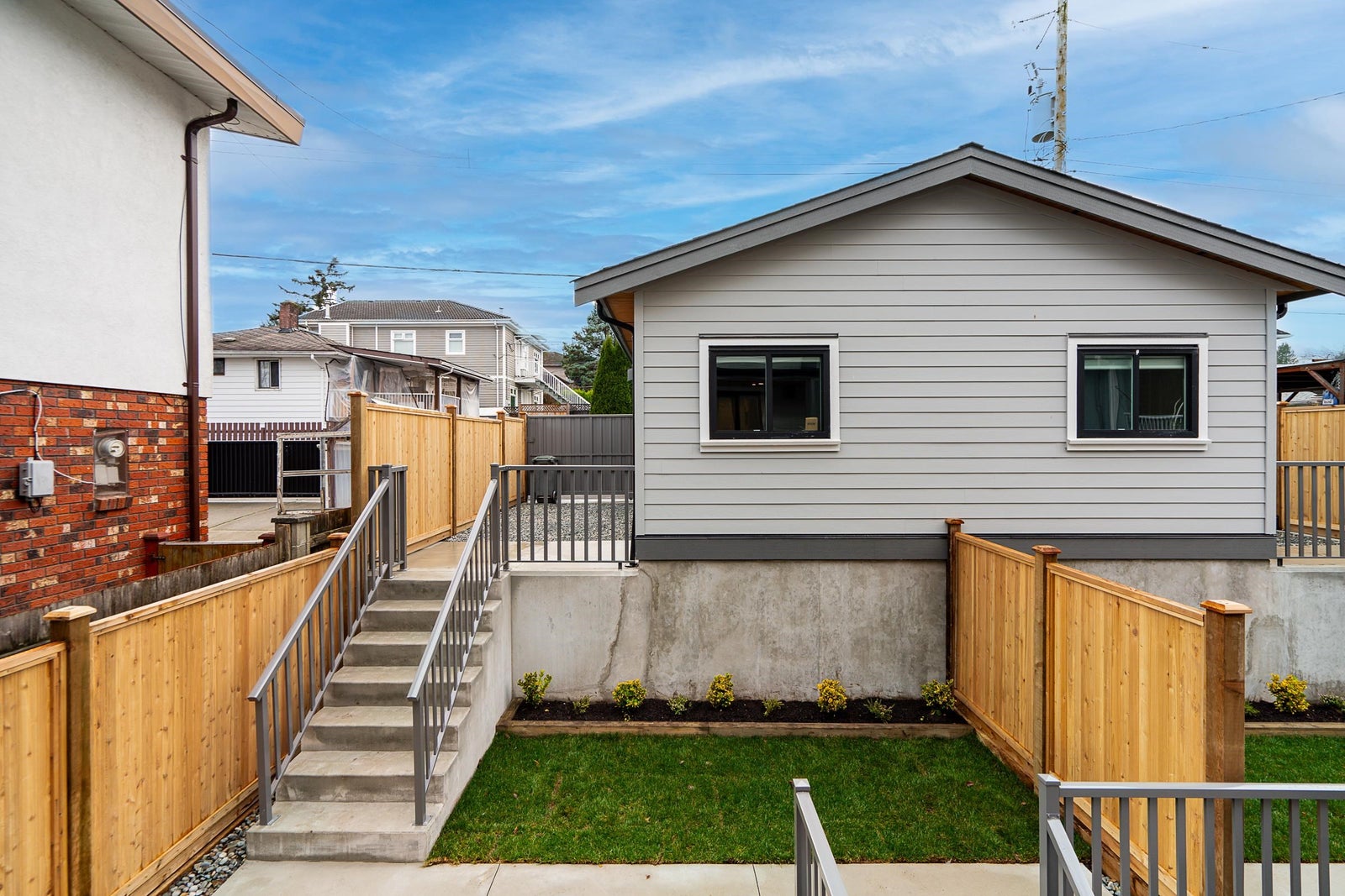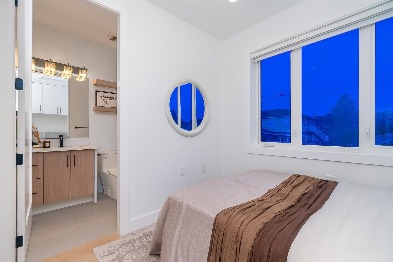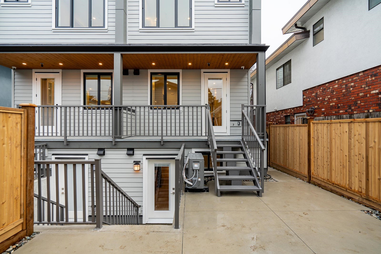 NEW 3-level half duplex in desirable Renfrew Heights! This stunning side-by-side home includes a 1 bed legal basement suite & is built by a trusted long-time builder. Nestled on a quiet residential street, it showcases a heritage-inspired exterior w/a modern, open-concept interior & SPECTACULAR MOUNTAIN VIEWS. Offering 1570sf of beautifully finished living space, features including designer flooring, fireplace, AC, radiant in-floor heating, forced air heating, a full security system w/camera surveillance, and a chef’s kitchen with high-end stainless steel appliances. No strata fees! School catchments: Renfrew Elementary and Windermere Secondary. Conveniently located near Boundary Road w/easy access to Hwy 1, Lougheed Hwy, Downtown Vancouver, the North Shore. Comes with a 2-5-10 WARRANTY!