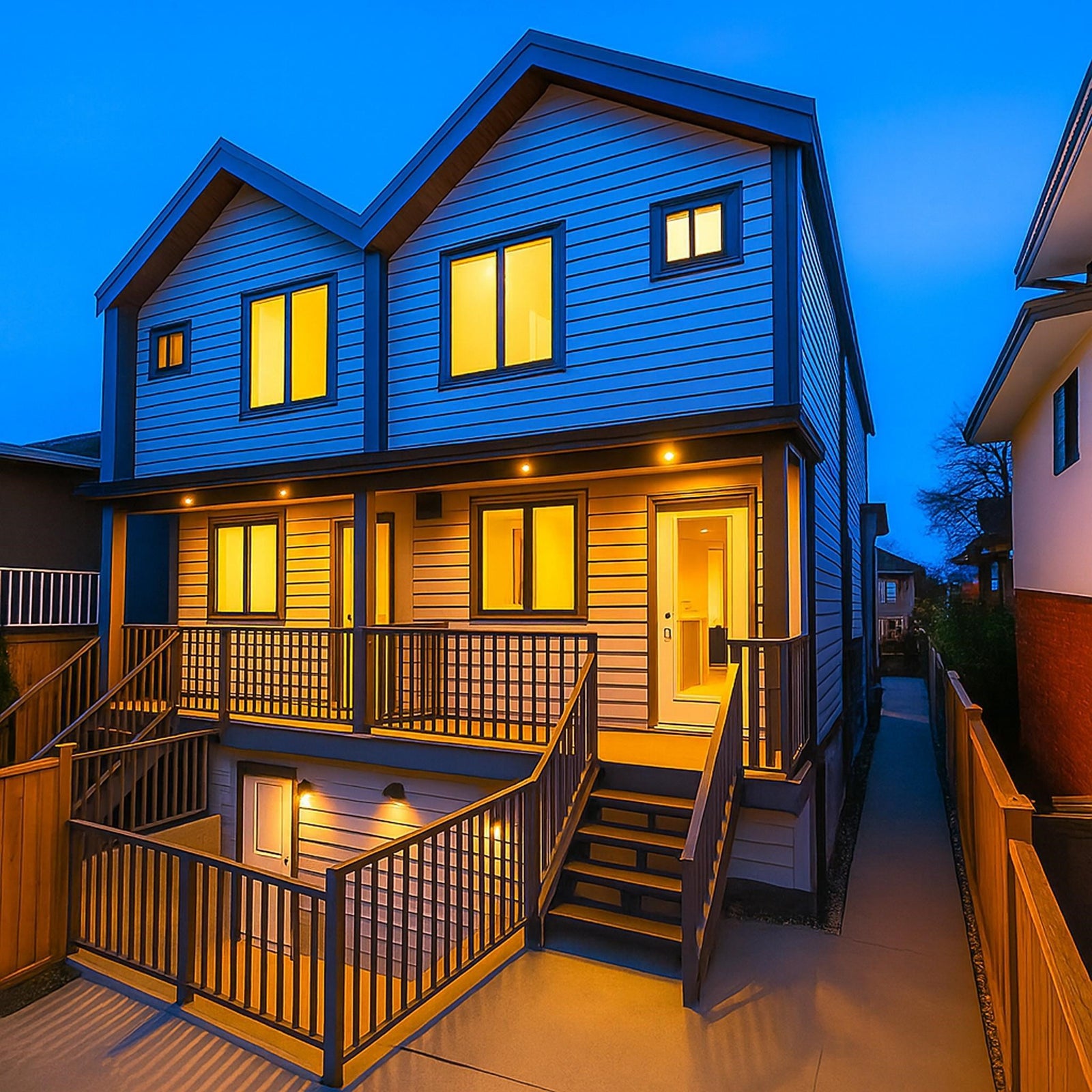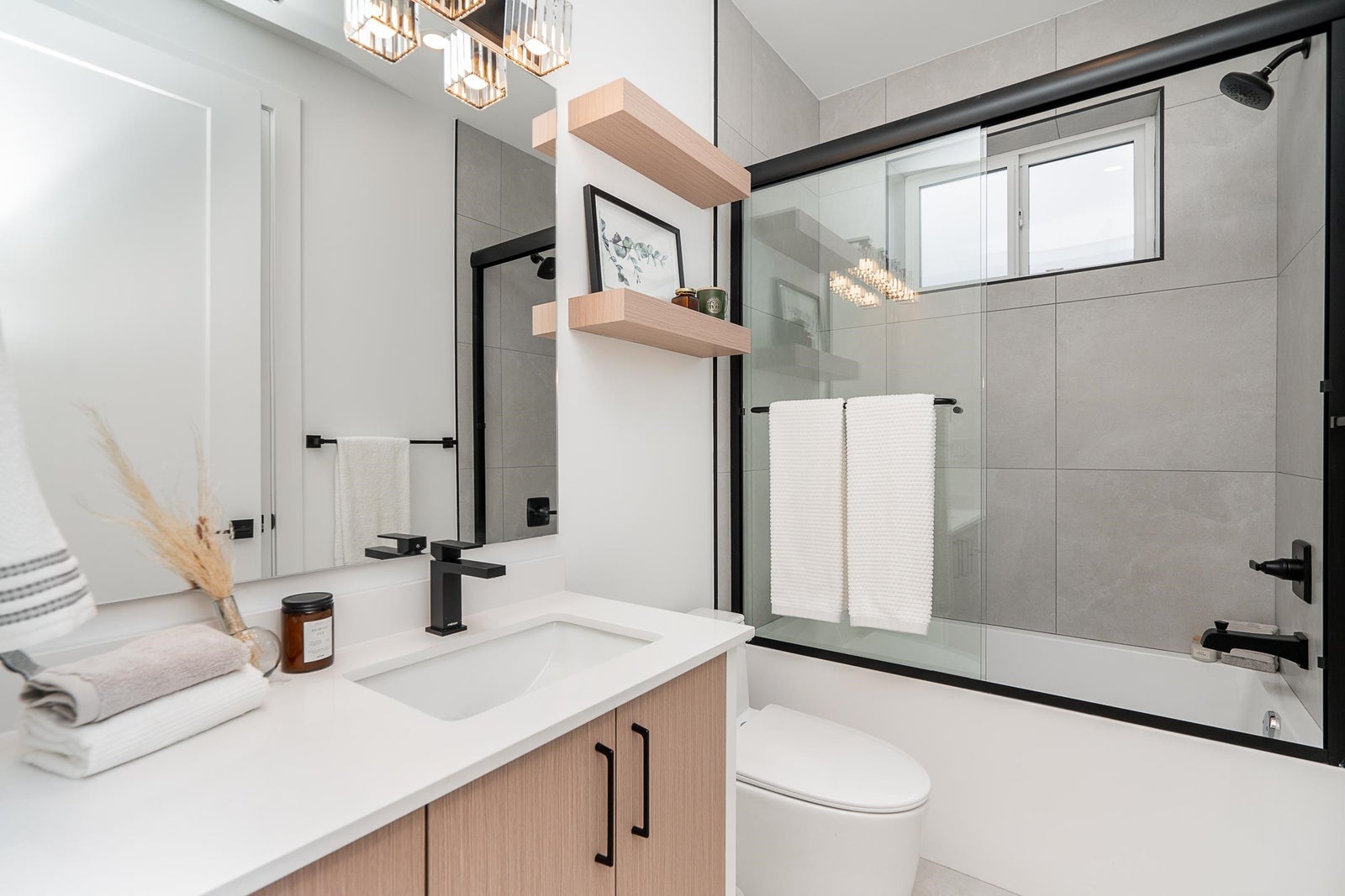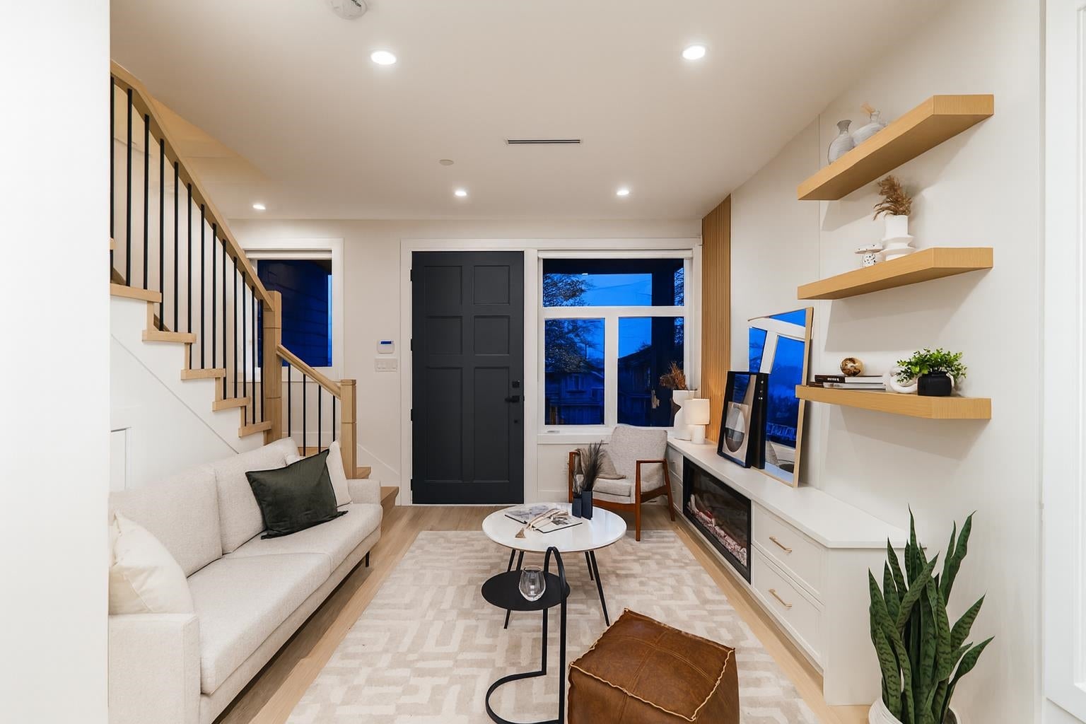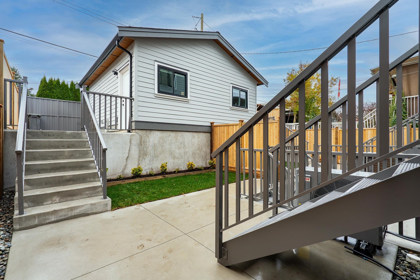NEW 3-level half duplex in desirable Renfrew Heights! This stunning side-by-side home includes a 1 bed legal basement suite & is built by a trusted long-time builder. Nestled on a quiet residential street, it showcases a heritage-inspired exterior w/a modern, open-concept interior & SPECTACULAR MOUNTAIN VIEWS. Offering 1570sf of beautifully finished living space, features including designer flooring, fireplace, AC, radiant in-floor heating, forced air heating, a full security system w/camera surveillance, and a chef’s kitchen with high-end stainless steel appliances. No strata fees! School catchments: Renfrew Elementary and Windermere Secondary. Conveniently located near Boundary Road w/easy access to Hwy 1, Lougheed Hwy, Downtown Vancouver, the North Shore. Comes with a 2-5-10 WARRANTY!
