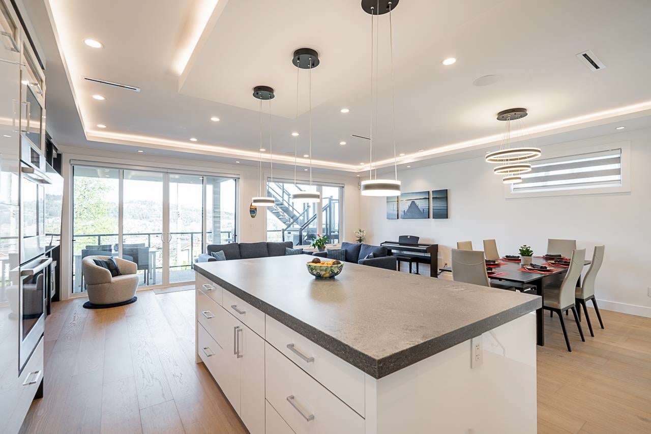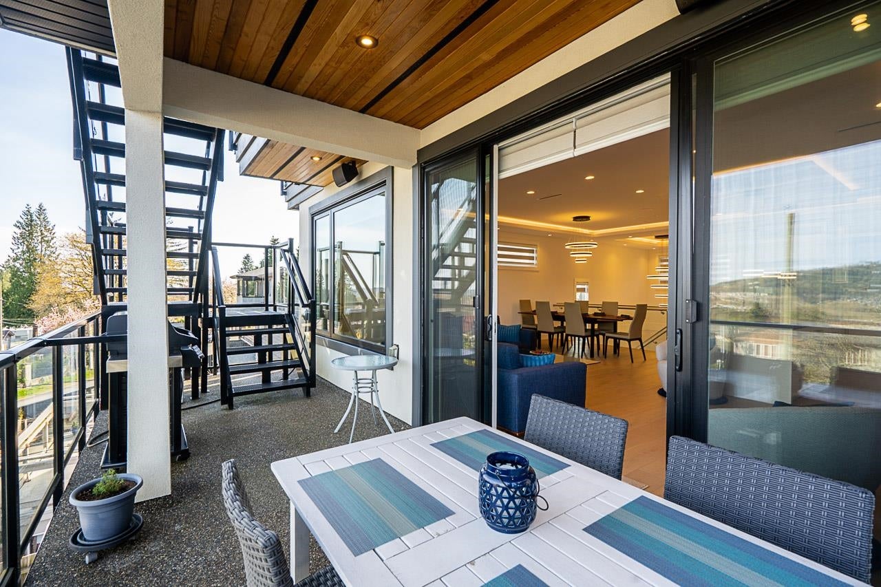 Exceptional 6 bed, 6 full bath home offers breathtaking views of Mt Baker & Burrard Inlet from 3 levels. Chef’s kitchen boasts premium Bosch appliances, double wall oven, oversized island & ample cabinetry. Enjoy seamless indoor/outdoor living w/a covered deck(gas BBQ/heater hookups) & rooftop patio w/gas fire pit hookup & sweeping water & mountain VIEWS! The luxurious primary suite feat a spa-inspired ensuite w/dual vanity, oversized rain shower & deep soaker tub. Smart home feat inc Control4 automation, A/C, radiant heating, smart thermostats, video security, and b/i central vac. The lower level incl a spacious family rm, flex space w/separate entrance, and a newer legal 2 bed suite complete w/kitch & laundry,ideal for rental or extended family. Bonus EV level 2 charging! Shows like NEW!
