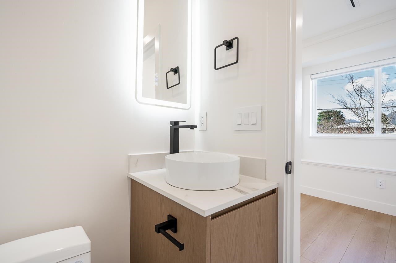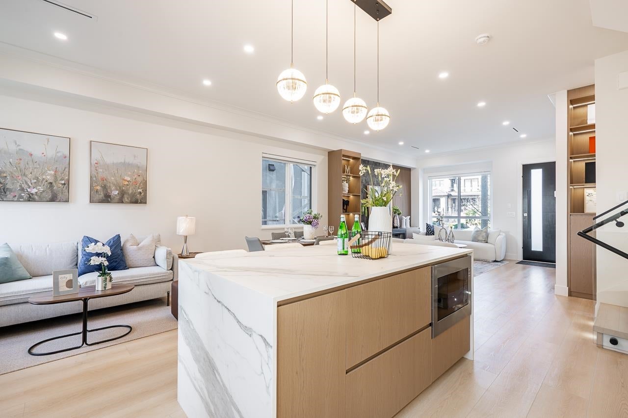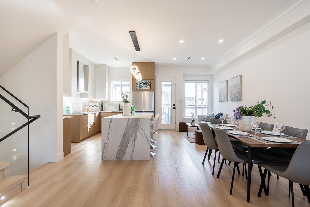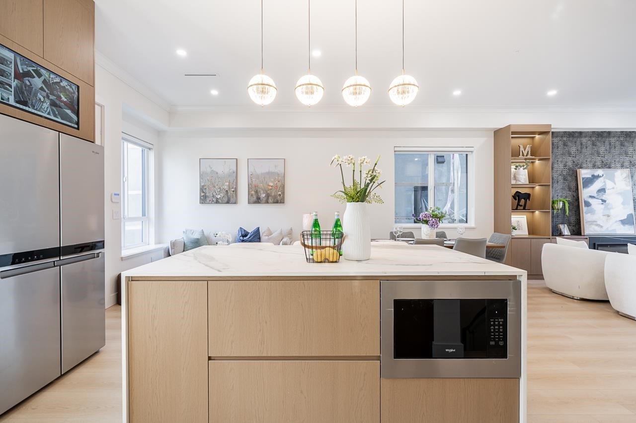 3-level modern home offering 2592sf of bright, functional living space. The open-concept main flr feat a gourmet kitchen w/quality finishes + spice kitchen, spacious living & dining areas, and cozy fireplace. A 2nd primary bdrm & full bath on the main provide an ideal setup for guests or multi-generational living. Up offers 3 bedrooms inc a generous primary suite w/W/I closet & luxurious ensuite. The ground level features a large rec room, full bath, R/I laundry & separate entry—offering excellent flexibility for extended family or future 2–3 bdrm suite potential. Designed for comfort & effic w/heat pump, A/C, HRV system, radiant h/w gas heating & security system w/cameras. Prime location close to BBY North Secondary, Aubrey Elem & short bus ride to SFU. 5 min to Brentwood and amenities!